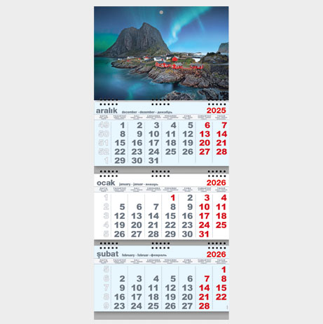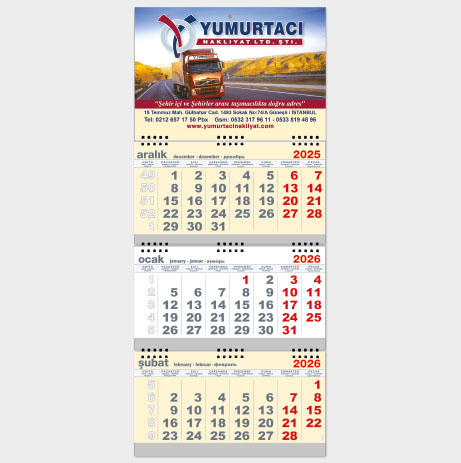 Kod-23 Jumbo Kuşe Gemici Takvim (Üç Parça Spiralli)
