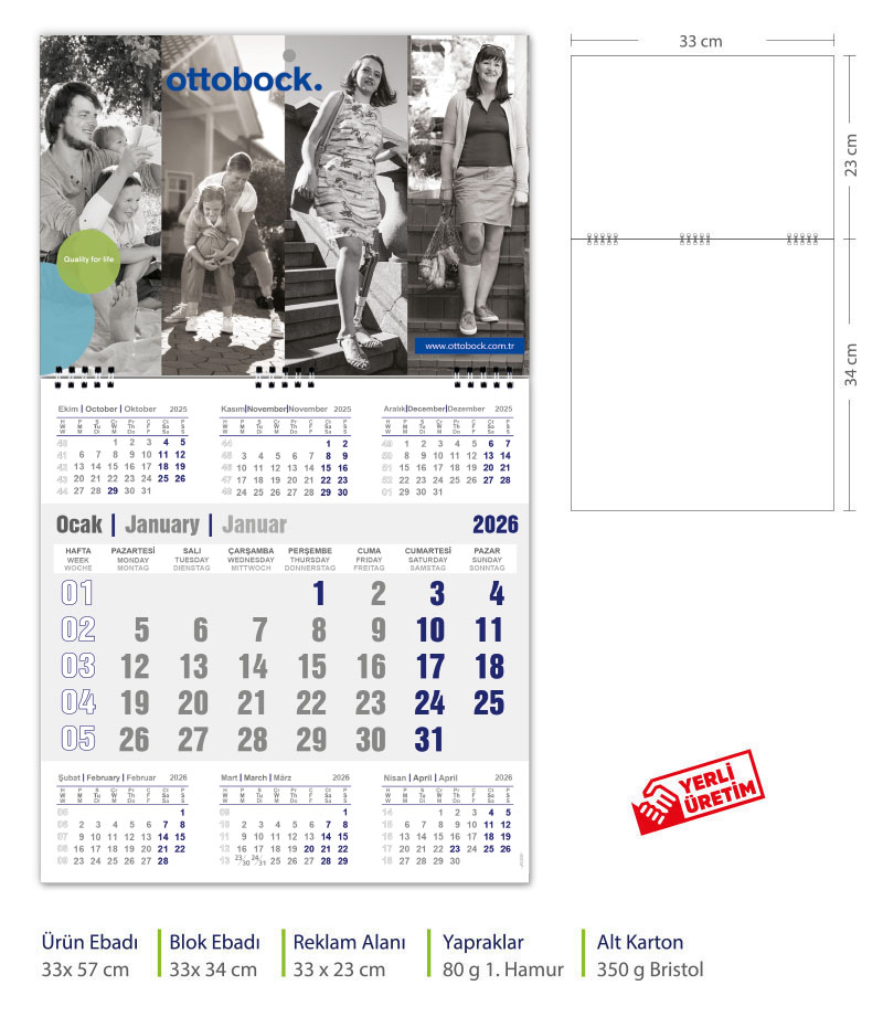 Kod-17 Yedi Aylık Gemici Takvim (Tek Parça Spiralli)
